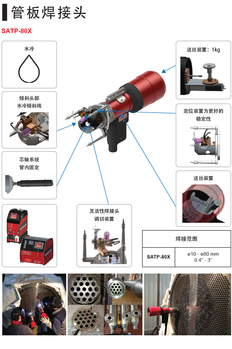 SATP-80X 几乎涵盖了所有常见的管到管板配置不锈钢和钛或黑钢。