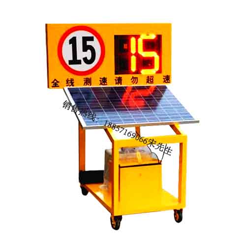 太阳能测速反馈标志车,又可称为雷达测速仪,是通过微波雷达测速仪来测量路面上车辆行驶的速度的,测速原理是多普勒原理,雷达测速屏利用微波照射行驶中的车辆,并从返回的微波信号中提取出目标速度信号,再转换成相应的速度值,又要和系统中的限速值进行对比,若测速的速度大于限速值,则以红色字体来显示所测的速度值,若小于限速值,则以绿色字体来显示速度值。