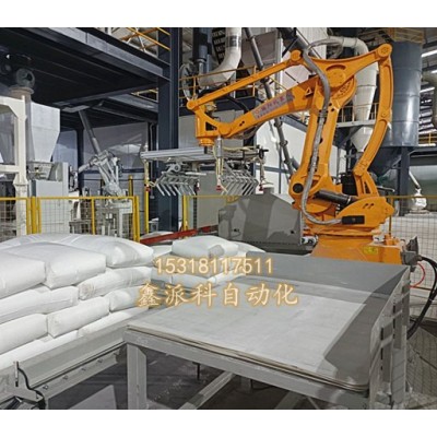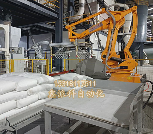 2.在使用也有差异性,码垛机器人安装方面更灵活一些,可以同时码放几个规格品种的成品包装袋,可以满足3条输送线传输来的成品。而高台码垛机只能码放一种规格和一条输送线的包装袋。