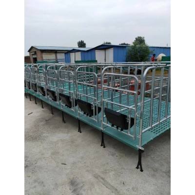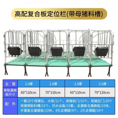 沧州母猪定位栏1个猪位由3片组成,10个位置为一组,不满一组的需要额外买1片。材质为热镀锌,尺寸为2.1*0.6m 0位/组,可以搭配食槽1寸管2.75cm厚,食槽有铸铁和铁板的。母猪定位栏的要求配备(1)前后门为500mm*600mm368块、550mm*600mm80块,材质为热镀锌管,门扣、插销为热镀锌钢材制作;(2)拉杆为热镀锌管拉杆2道、通长20热镀锌管拉杆1道;(3)水管安装为热镀信管拉杆兼当水管,每2栏用三通连1根520mm长(4)漏粪板为60cm*60cm*30mm 每块重量在15公斤以上;(5)喷雾降温设施为¢20热镀锌管,每三个栏安装1个铜喷头;(6)笼架为¢20热镀锌管外包,横向加筋20热镀锌管1根,其余为¢15热镀锌管,壁厚均为2.5 mm。