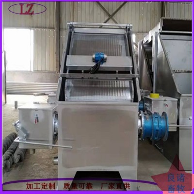 B、机械原理:禽畜粪便固液分离机通过无堵浆液泵将粪水抽送至主机,经过挤压螺旋绞龙将粪水推至主机前方,物料中的水分在加压带滤的作用下挤出网筛,流出排水管,主机前方压力不断增大,当大到yiding程度时,就将卸料口顶开,排出挤压口,达到挤压出料的目的。