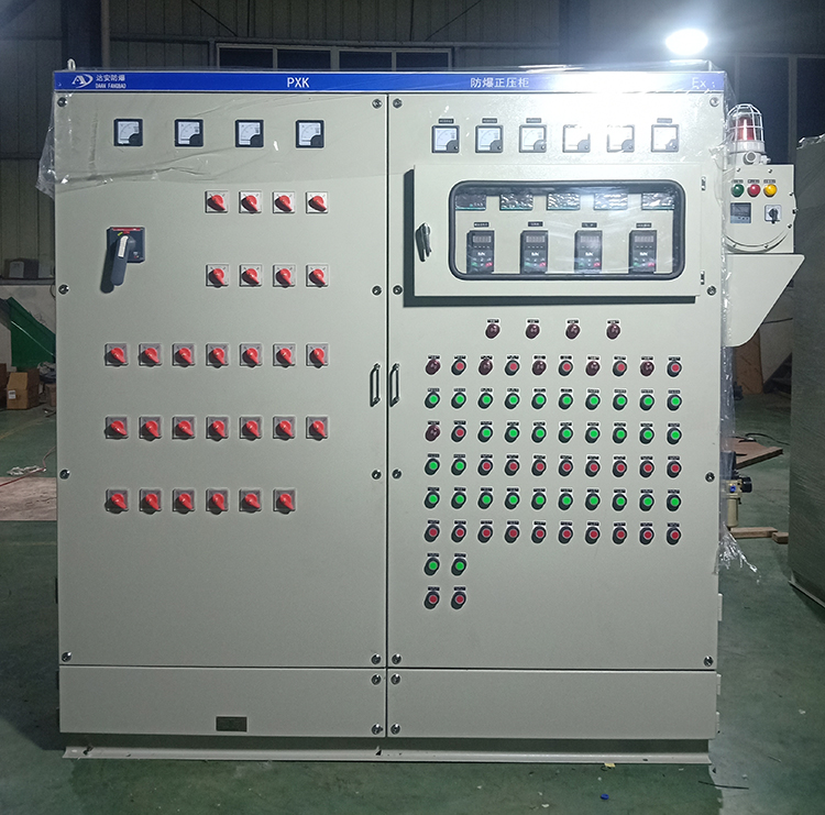 4. 配电柜由柜体、控制系统、布气系统、报警系统、配电系统组成;正压腔内装部分控制系统的防爆元件及用户的配电系统元件(也可根据客户要求订做分体式或联机式);