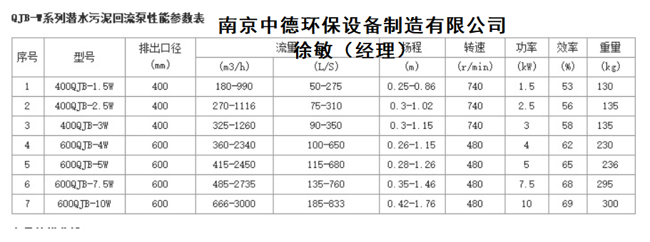 QHB潜水污泥回流泵选型询价