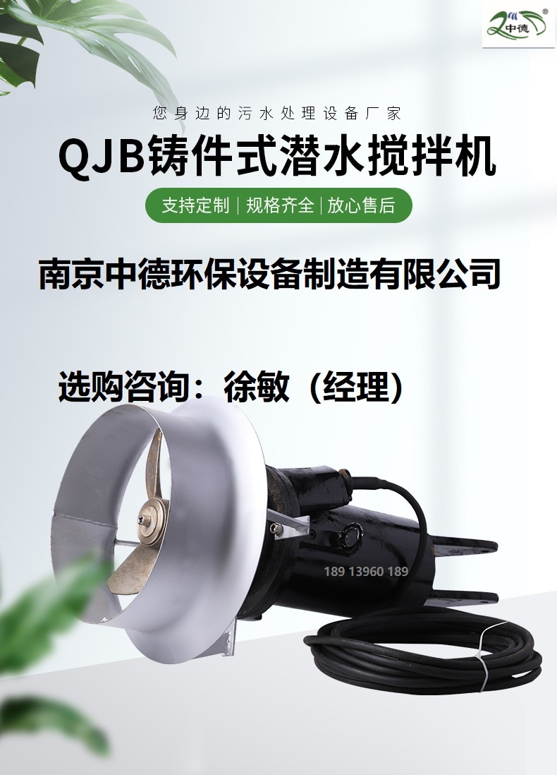 采用潜水型三相鼠笼异步电机,装在充气的防水的壳内,防护等级为IP68。定子绕组和定子导线的绝缘等级为H级180℃。定子通过滴注法绝缘,使得绕组满充率至少达到95%。定子热缩嵌入铸铁定子室中。不采用需在定子壳上钻孔的螺栓、针和其它连接装置。电机设计成可连续处理搅拌 40℃的介质,每小时可至少起动15次。为监控每相绕组上的温度,在定子进线线圈中装有热敏开关,热敏开关的设定打开温度为140℃,闭合温度为95℃,可以与电机过载保护相连接,并与控制柜连接。