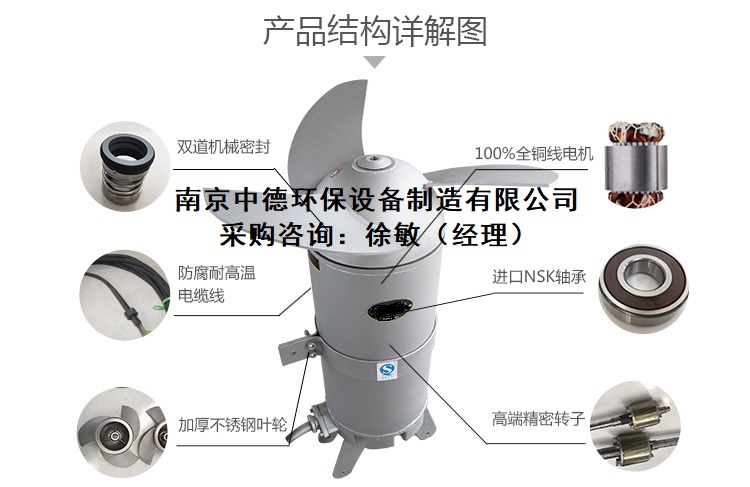 南京中德Q J B型多功能潜水搅拌机又称为高速潜水搅拌机、混合潜水搅拌机、污泥搅拌器,适用于污水处理厂平衡池、硝化/反硝化池、污泥处理和储存池,以及工业流程中搅拌含有悬浮物、固杂物的液体,防止沉淀。