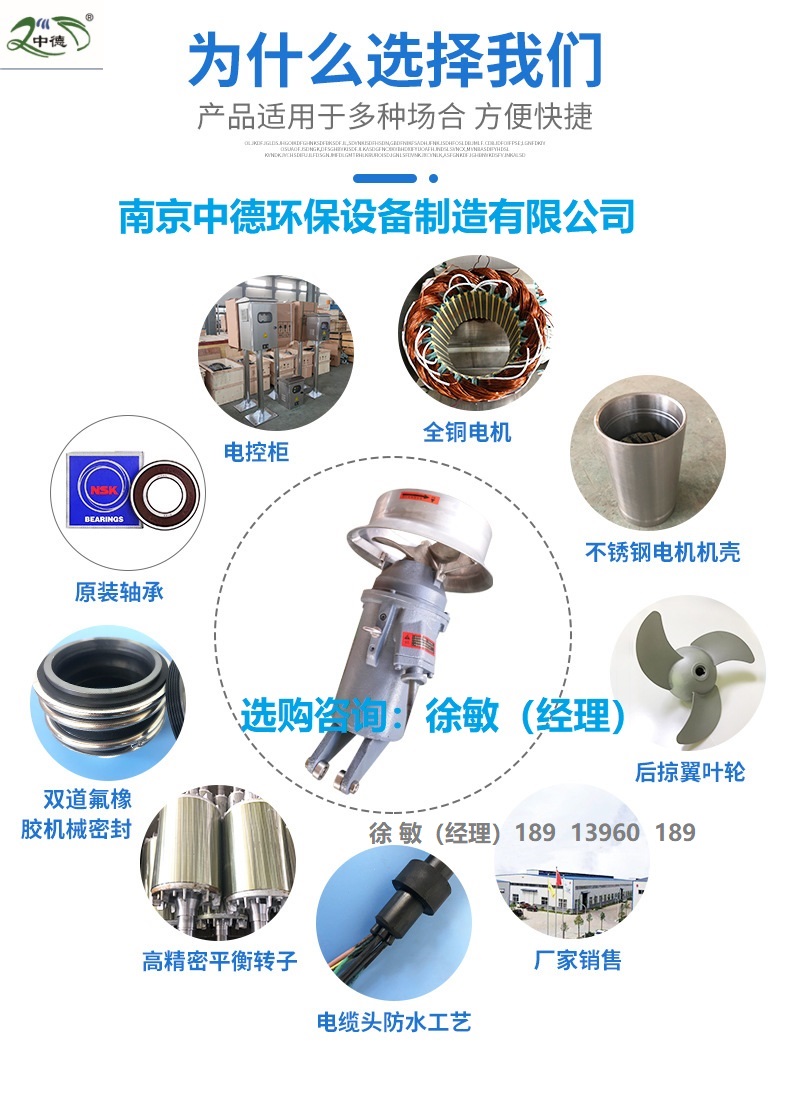 南京中德混合型多功能潜水搅拌机又称为高速潜水搅拌机、混合潜水搅拌机、污泥搅拌器,适用于污水处理厂平衡池、硝化/反硝化池、污泥处理和储存池,以及工业流程中搅拌含有悬浮物、固杂物的液体,防止沉淀。