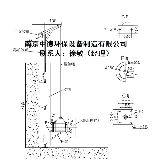 标签: 多功能螺旋式潜水搅拌机主要由设备主机、安装系统及电控设备组成