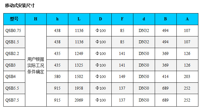 QSB型深水自吸式潜水射流曝气机的安装形式有自耦式和移动式两种。