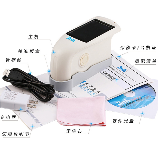 | 标准附件 | 充电器、USB数据线、说明书、GQC品质管理软件(官网下载或售后提供)、校正标准板 |