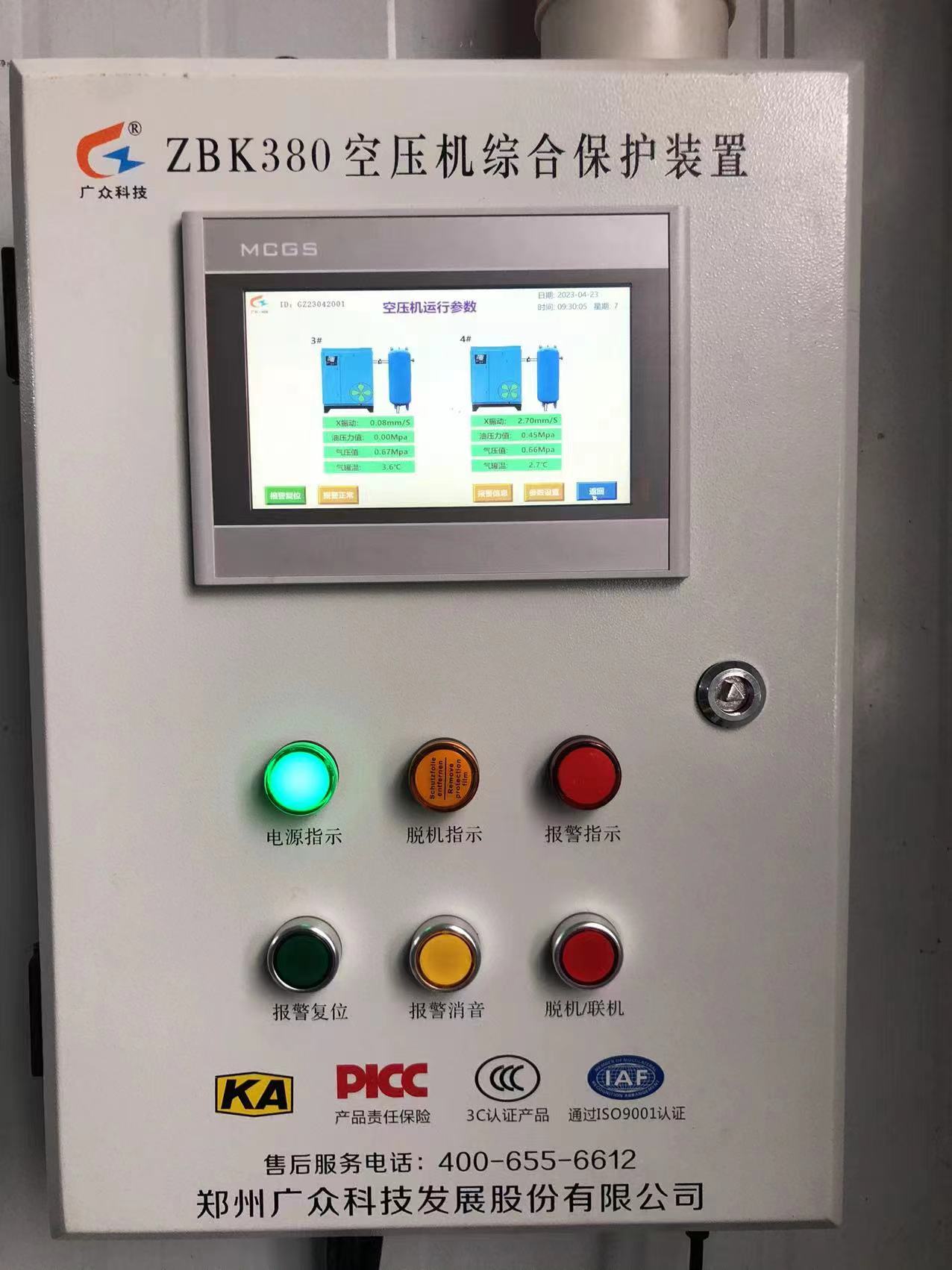 本产品能够准确检测空压机的油路是否缺油、少油、断油,当出现异常时进行声光报警提示,并记录故障时间,超过设定值时自动控制空压机紧急停机。从而断绝因空压机缺油、少油、断油导致的空压机机头抱死等严重故障出现。