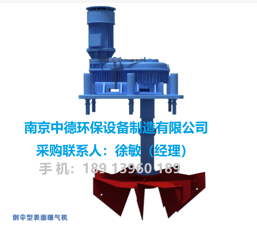 倒伞叶轮:直式叶片结构,采用碳素钢经焊接成型,并进行平衡校正、定型、除锈,其径向推流能力强、完全混合区域广,动力效率高、充氧能力大,不挂脏、不堵塞,自洁性能佳,可以正反两个方向旋转。