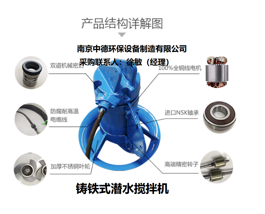 潜水搅拌机完全潜入水中工作,不能在易燃易爆和强腐蚀性的环境中工作!