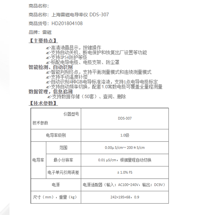 。自动识别4种GB电导标准溶液,支持1点电导电极标定