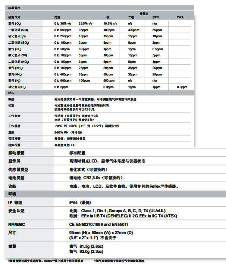 • TWA/STEL和两级瞬时报警并带峰值保持