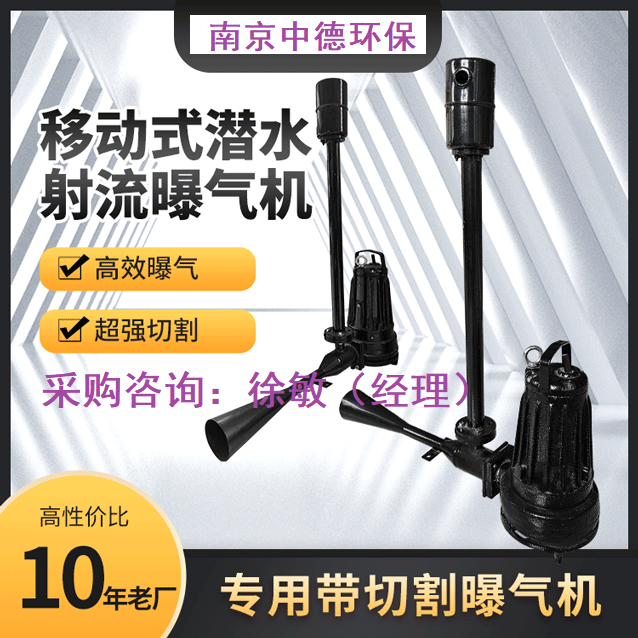 由潜水电泵及喷射口组成,从而使水体搅动与充氧同时进行,气泡细密,既可获得较高的氧气转移率,又具有叶轮无堵塞等优点。