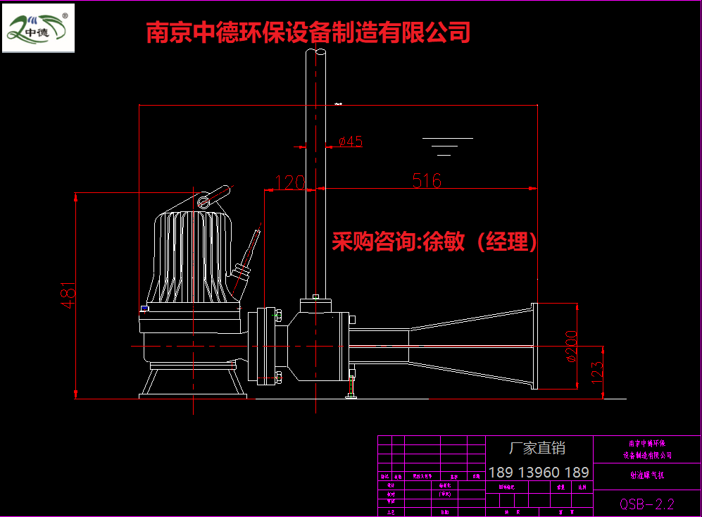 注:表中进气量及增氧能力是在标准试验条件下(20°C水温,气压101.325kpa),曝气机潜水深度3M,试验介质为清水。在中度污水中,增氧能力可按系数0.85作为设计依据。