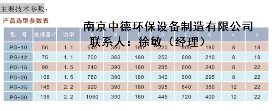 型号 法兰口径 功率 处理量 PG-10-100-1.5-56 100 1.5 56 PG-12-125-1.5-75 125 1.5 75 PG-15-150-2.2-90 150 2.2 90 PG-20-200-2.2-108 200 2.2 108 PG-25-250-3-145 250 5 145 PG-30-300-3-196 300 3 196