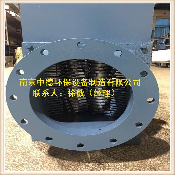 3、污泥切割机所用铣刀呈左螺旋状和右螺旋状,装入主动轴和从动轴后再按左螺旋状和右螺旋状布置,以减少破碎力,提高破碎机传动平稳性。
