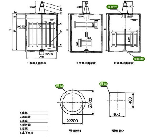 框式搅拌机构造及工作过程 J型桨式搅拌机由电机、减速机、机架、搅拌轴、桨板、联轴器、水下支座等组成。