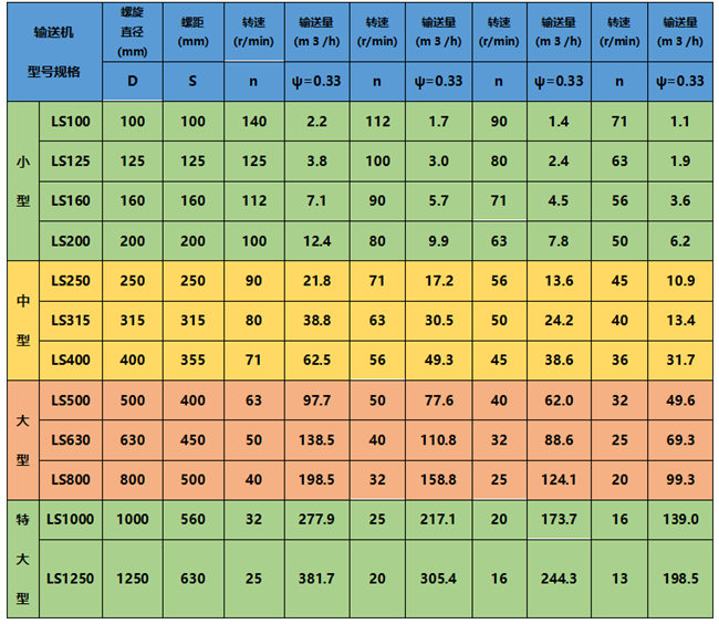 4、WLS型无轴螺旋输送机输送量大。无轴螺旋输送机输送量是相同直径传统有轴螺旋输送机的1.5倍。