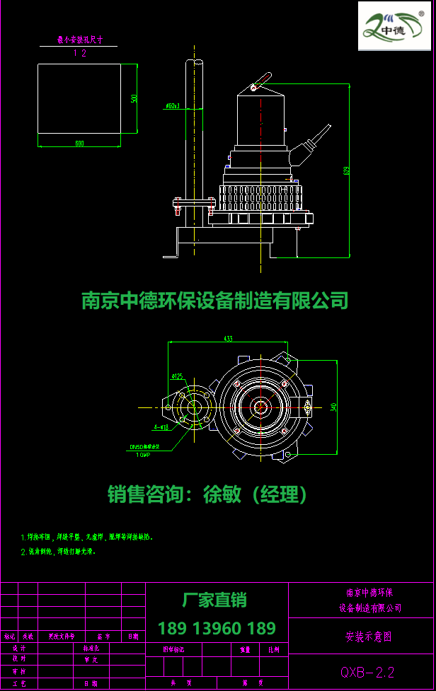 南京中德提供不同型号、电机功率、叶轮直径的推流器(详见型号选型表)价格可以含税、含运费。欢迎垂询!