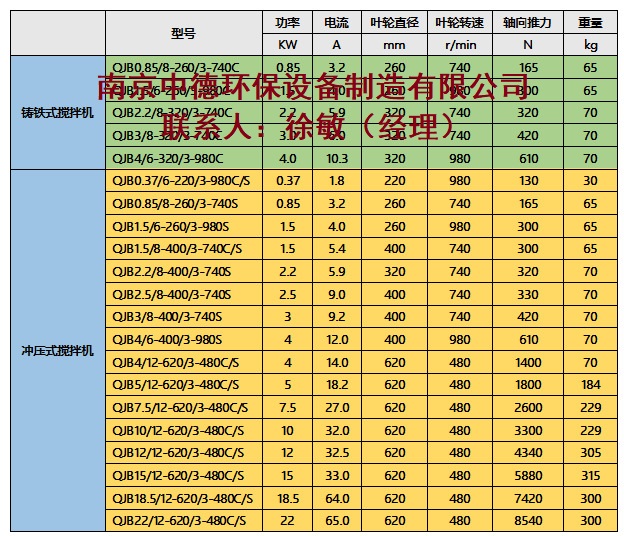 中德提供不同型号、电机功率、叶轮直径的推流器(详见型号选型表)价格可以含税、含运费。欢迎垂询!