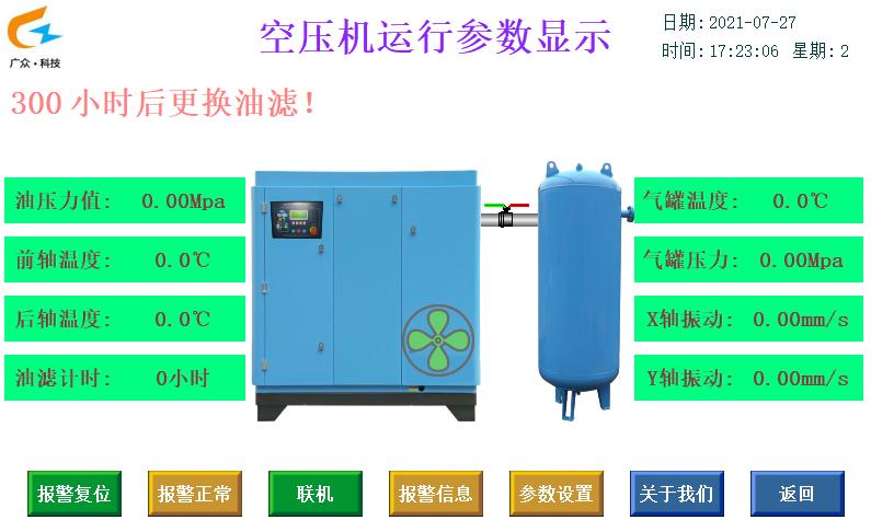 空压机不仅能为煤矿山、有色金属矿山、工厂等提供服务,我公司根据空压机的特点研发了一款综合保护装置,其功能配置有断油保护、断水保护、温度保护、压力保护、电机温度保护、振动保护、读取空压机面板数据等,保证人员的生命安全。我公司的保护装置预留的物联网接口和数据上传功能安装完毕后交接对应的技术协议,其更是实现远程操控的必要途径。无论什么牌子的空压机,都可实现对应的保护。