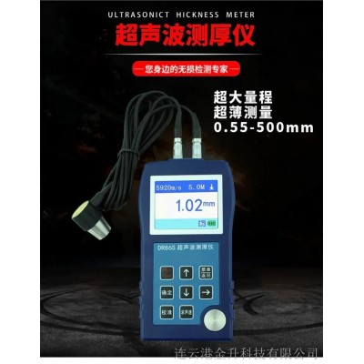 超大超薄量程DR86S超声波测厚仪0.55-500MM 东如超声波测厚仪是一款利用超声波测量原理,采用高速处理器、高集成芯片设计,实现便携式、无损、快速、**地测量多种材料厚度及声速的高精度便携式测厚仪。能以恒定速度穿透物体且产生反射波的材料都可以使用。 适用于各种材料的高精度厚度测量需求,可应用于各种金属(钢铁、不锈钢、铝、铜、等)石英、玻璃、塑料等材质的被测物体厚度测量。 只需要将探头放置于被测物体一侧的接触面上,既可以迅速准确测量出被测物体厚度。 一、技术参数 技术参数 DR86S 超声波测厚仪 量程 全量程:0.55-500mm 超薄模式:0.55-1mm 标准模式:0.75-500mm (标配探头:5P,φ10) 显示精度 0.01mm 测量误差 ±(0.5%H+0.05)mm,H为被测物体厚度 材料声速 1000-9999m/s 液晶屏 2.3寸大彩屏显示 校准功能 仪器校准和声速校准 数据存储功能 每组可存储200个数据,共10组可存储2000个数据 电源电量显示 有 蓝牙 选配 关机方式 手动/自动(5分钟无操作自动关机) 主机外形尺寸 130mm*70mm*26mm 电源 三节(7号)碱性电池 工作温度 0℃-50℃ 工作湿度 20%RH—90%RH 重量 125g(不含探头、电池)