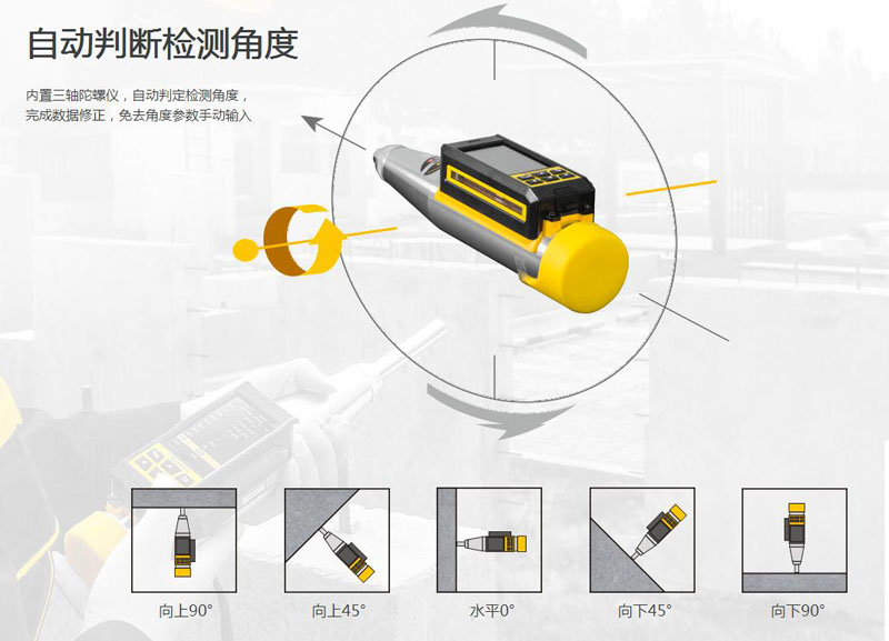 内置三轴陀螺仪,自动判定检测角度,完成数据修正,免去角度参数手动输入;