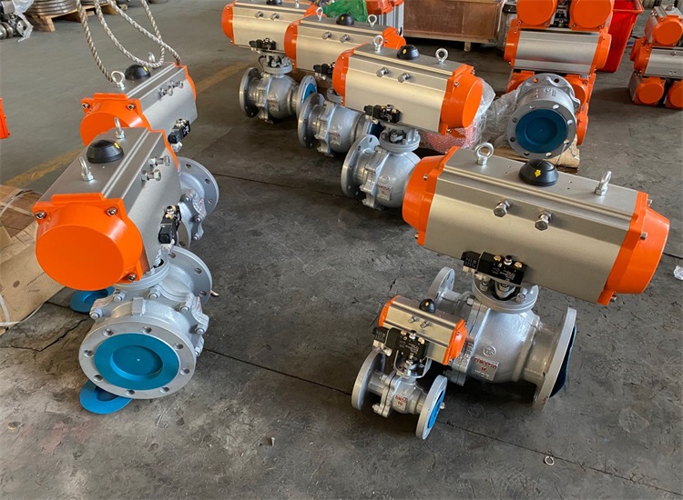 气动单作用球阀采用新型系列GT型气动执行器,有双作用式和单作用式(弹簧复位),齿轮齿条传动,安全可靠;大口径阀门采用系列AW型气动执行器拔叉式传动,结构合理,输出扭矩大,有双作用式和单作用式。