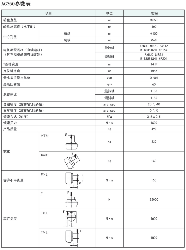 伺服电机标配:FANUC-αiF8、βiS12、βiS22 MITSUBISHI-HF154、HF204