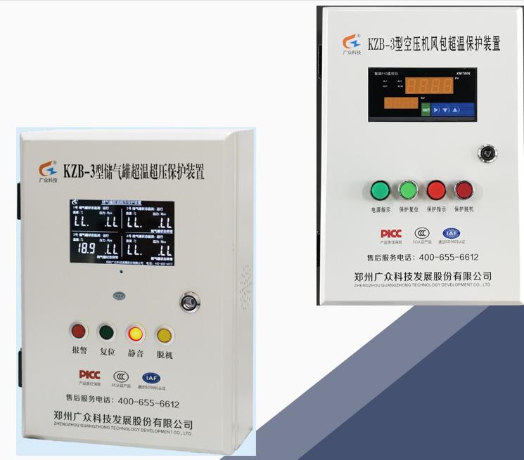 空压机超保装置能实现对所保护设备运行数据的监测,每个保护装置都有其设定门槛,一旦监测到的数据超出设定范围保护装置将自动报警并控制设备的运行。报警输出和保护输出不是通过同一个通道进行的,避免了相互影响。保护装置通过特定的传感线材(采用高屏蔽率的屏蔽线缆)与空压机储气罐实现无损连接,该线材具有良好的抗干扰能力,能有效的避免设备损坏。