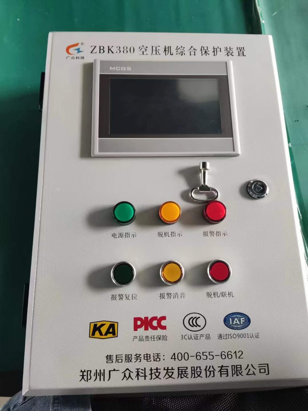 首先,空压机断油保护,准确检测油路是否缺油、少油、断油,出现异常时进行声光报警提示,并记录故障时间,超过设定值时自动控制空压机紧急停机。