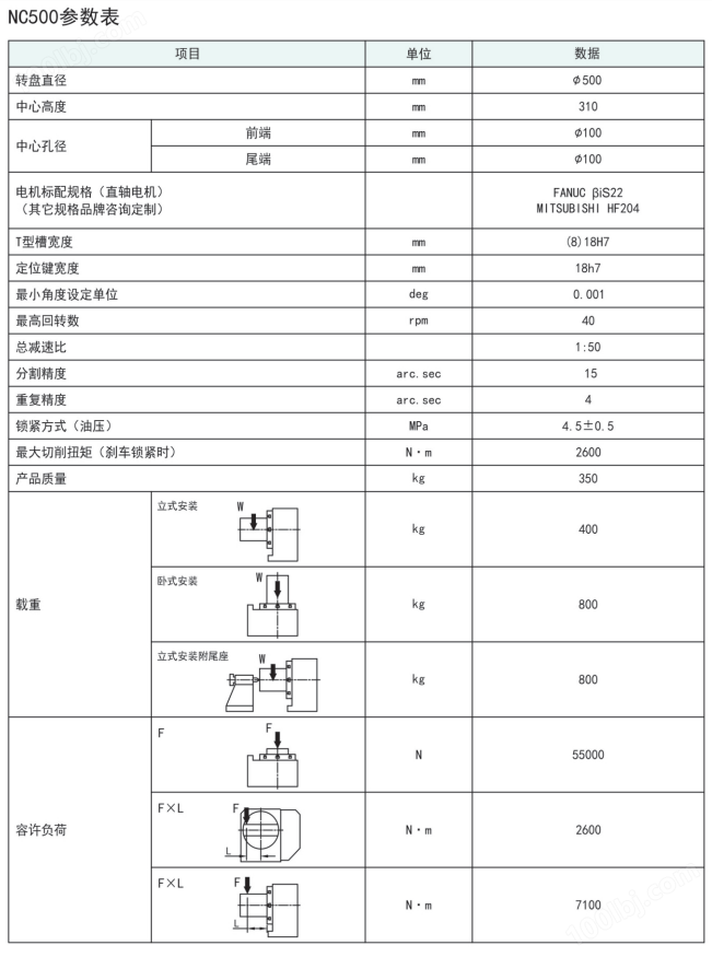 伺服电机标配:FANUC-αiF8、FANUC-βiS12、MITSUBISHI-HF154
