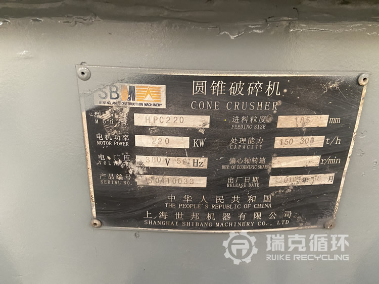 此设备有上海世邦生产于2010年8月,原用于花岗岩的中细碎作业,设备回收之前在广西某砂石骨料生产厂家闲置。由瑞克循环于2022年回收,并对设备进行整体检修,发现设备除易损件需要更换之外,主轴等部位有磨损情况出现,经技术团队制定再制造方案之后,将受损部件通过激光熔覆再制造技术进行提升性修复,并更换易损件、润滑系统等,经过再制造后在试机平台经过长达数小时的试机之后,指标均符合出售标准。因此喷漆进入待售区,目前为现货销售,且有完善的售后质保。