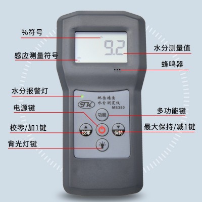 MS380墙面地面水分仪:该仪器主要用于地板铺设、涂料粉刷、地坪上漆、建筑装潢、工地施工过程中。该仪器通常被不同用户的客户称为墙体水分仪、地面水分仪、混凝土水分仪、石膏板水分仪等等。该仪器可测定水分的产品比较广泛,主要有以下几种:墙面(墙体、墙壁、墙砖)、地面(水泥地面、地坪、环氧地坪、混凝土)、石膏板、大理石、泥坯、地砖、瓷砖等。