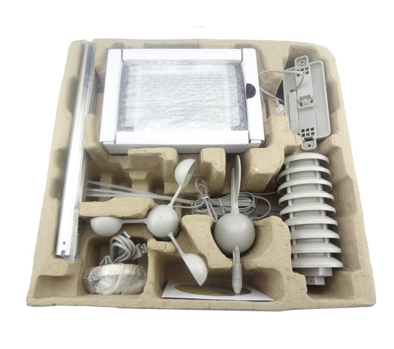 本品无线气象仪可以量测并记录:室内外温度湿度, 室外风速风向, 室外雨量, 气压等