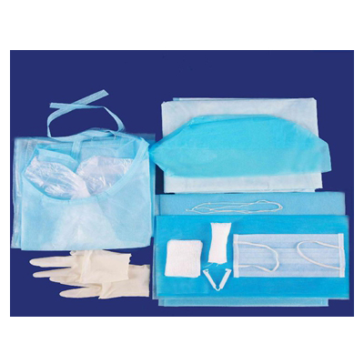 结构及组成:手术包A型由基本配置:一次性医用中单和选用配置:一次性无菌手术衣、剖腹单、医用脱脂纱布块、一次性治疗巾、一次性使用灭菌橡胶外科手套、一次性使用医用橡胶检查手套、一次性使用聚氯乙烯医用检查手套、医用外科口罩、一次性无菌医用口罩、一次性无菌医用帽、一次性医用包布、一次性使用洞巾、医用纱布垫、一次性医用垫、医用棉球、无菌塑柄手术刀、镊子、海绵刷、塑料碗、弯盘、塑料盆、药杯、医疗器械防护罩、衣服夹、托盘组成。B 型由基本配置:一次性使用聚乙烯检查手套和选用配置:一次性无菌手术衣、剖腹单、医用脱脂纱布块一次性治疗巾、一次性使用灭菌橡胶外科手套、一次性使用医用橡胶检查手套、一次性使用聚氯乙烯医用检查手套、医用外科口罩、一次性无菌医用口罩、一次性无菌医用帽,一次性医用包布、一次性使用洞巾、医用纱布垫、一次性医用垫、医用棉球、无菌塑柄手术刀:镊子、海综刷、塑料碗、弯盘、塑料盆、药杯、医疗器械防护罩、衣服夹、托盘组成。