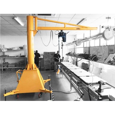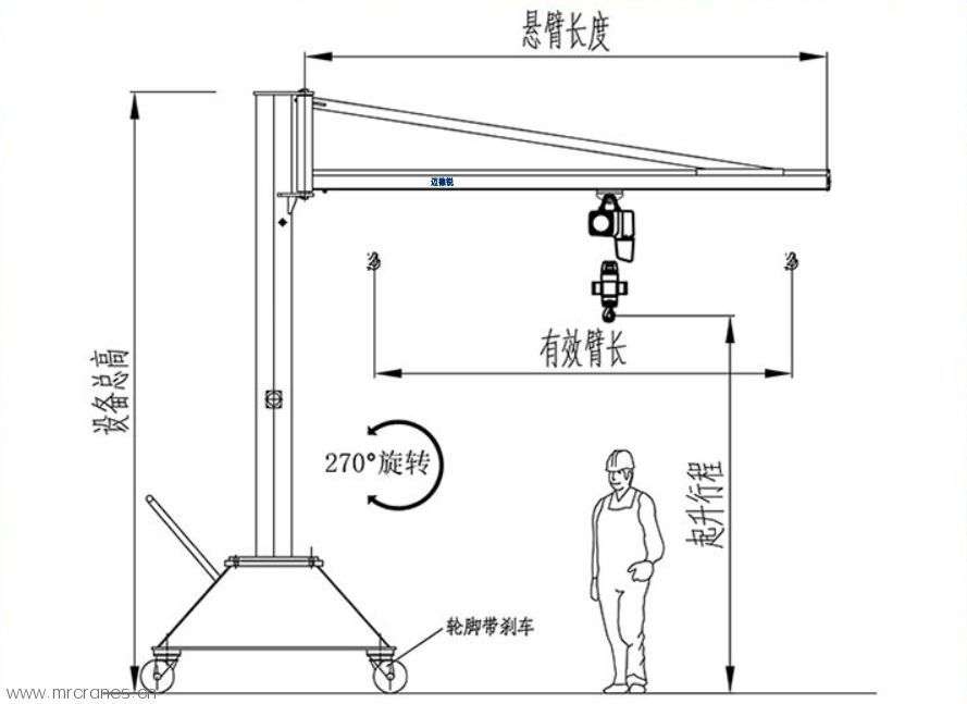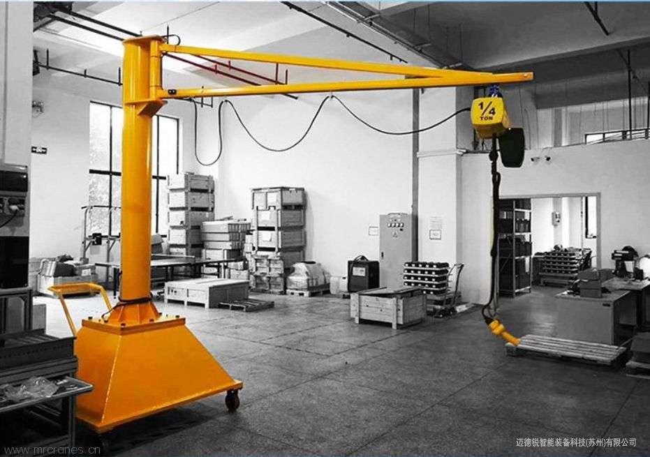 使用环境要求:移动式悬臂吊在人力推动下可在平滑的工作场地自由移动