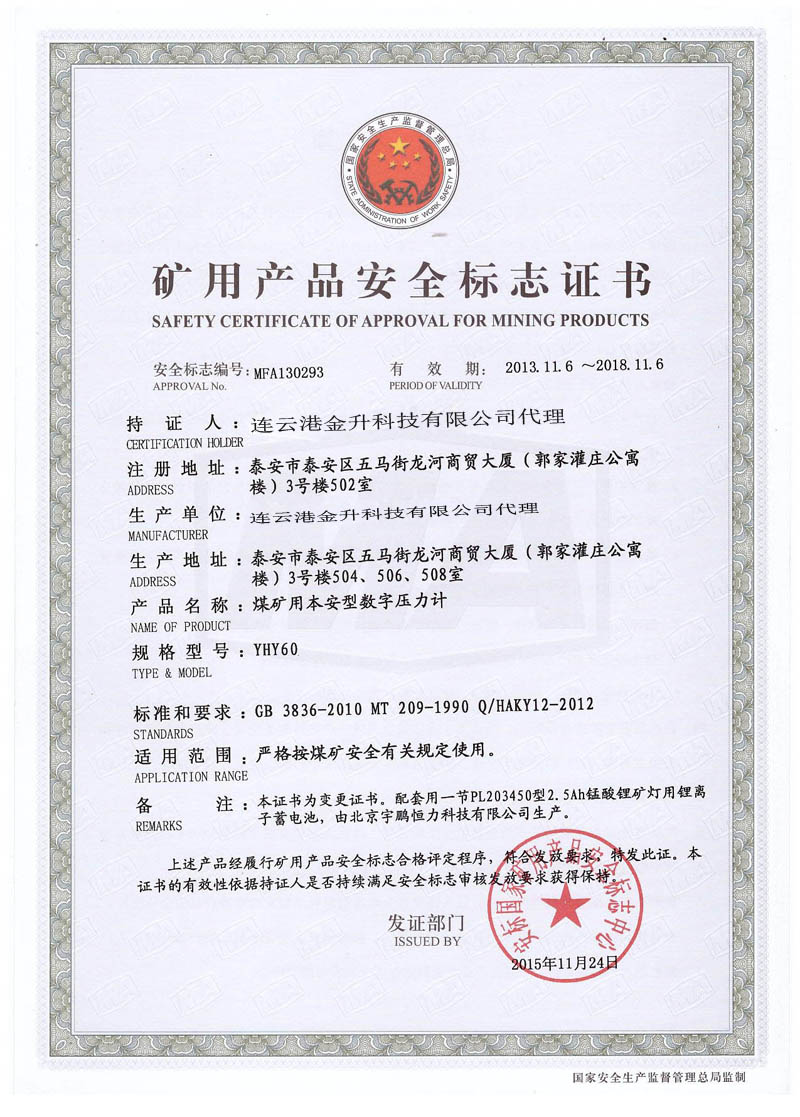 YHY60煤矿用本安型数字压力计主要用于综采支架压力检测,其它液压设备的压力检测。它采用电阻式压力传感器和微处理器控制的电子电路及干电池组成。仪器采用一体化设计,具有防水、防爆、抗冲击、灵敏度高、使用寿命长等特点。是传统的指针式压力表的理想替代产品。
