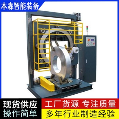 轮胎钢圈环体缠绕机圆形物料缠绕机是一种用于将钢卷进行缠绕包装的机器。它的主要功能是将钢卷缠绕多层包装材料,从而保护钢卷在运输过程中不受损坏。这种机器被广泛应用于钢铁制造、建筑材料和机械加工等行业。