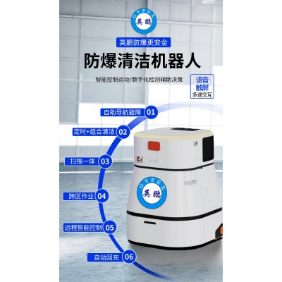 英鹏防爆清洁机器人采用了特殊的防爆材料和设计,能够有效地防止爆炸和火灾等危险情况的发生,确保在易燃易爆等危险环境中安全可靠地工作。