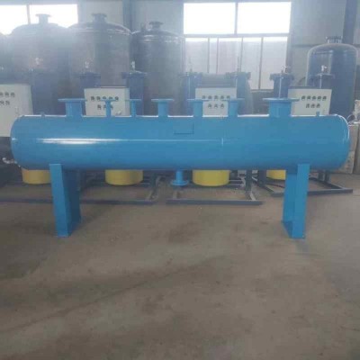 分集水器是由集水器和分水器组合而成的水流量分配和汇集装置。分水器是将一路进水通过一个容器分为几路输出的设备,而集水器则是将多路进水通过一个容器一路输出地设备。其管理若干的支路管道,分别包括回水支路和供水支路,用碳钢或不锈钢板制作,属于压力容器类制造,其需要安装压力表温度计。他一方面将主干管得水按需要进行流量分配,各区域分支环路的流量满足负荷需要,同时还要将各分支回路的水流汇集,并且输入回水主干管中。实现循环运行,其回水再利用,可达到更节能的效,可以同时满足供热与制冷的需要。