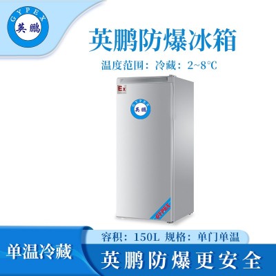 防爆单门电冰箱只有一扇门,没有专门的冷冻室。其冷冻室箱体直接由蒸发器构成,采用盒式结构,带有小门,安装在内胆的上部,其内温度一般为-18~-0℃,可供制冰,冷冻化学品。蒸发器下面是冷藏室,中间无隔热设施。冷藏室靠空气的自然对流得以降温,温度一般控制在2~8℃,内有感温探头,搁架,温度控制器安装于外部的防爆腔体内 。